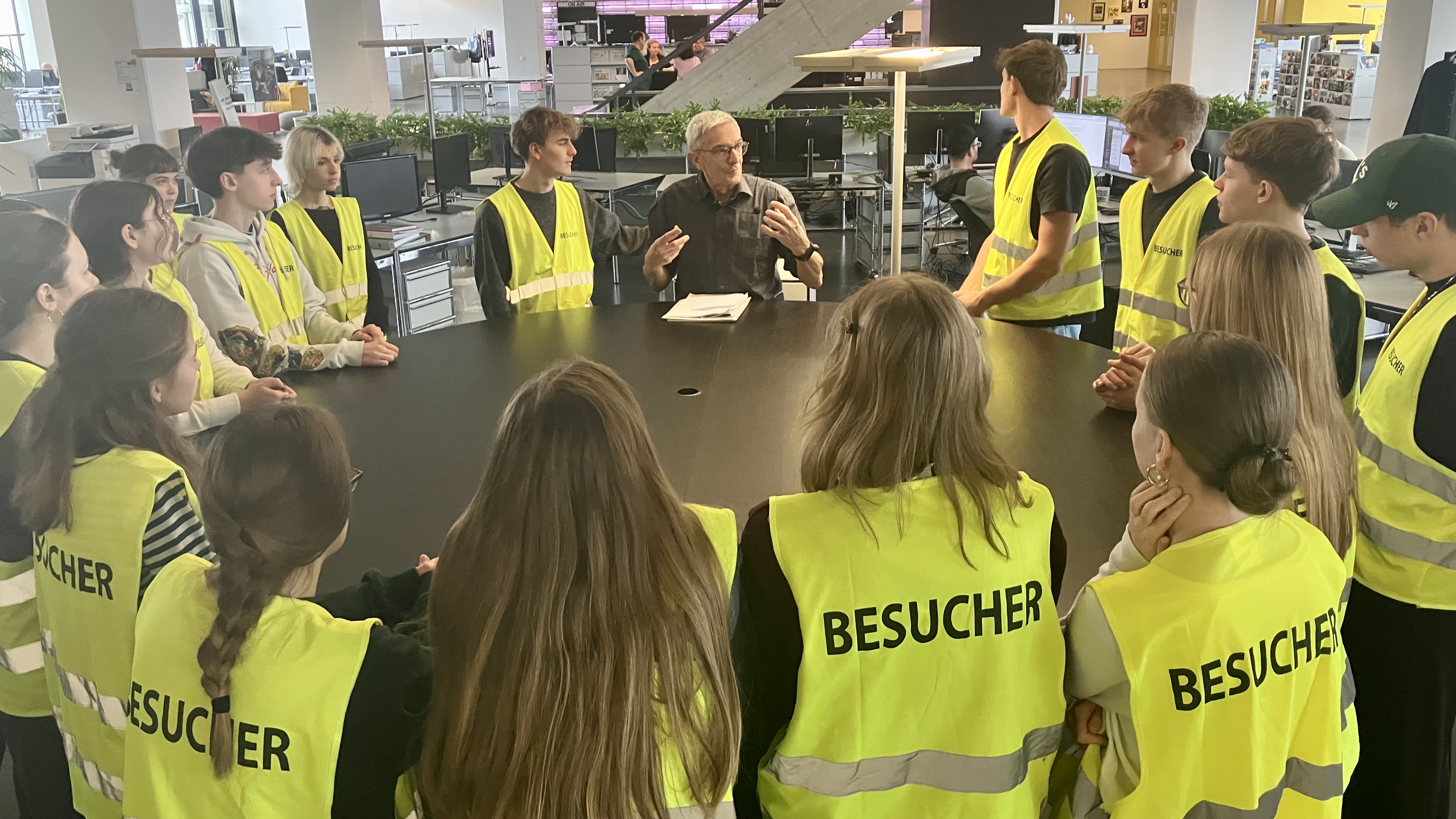 Ein besonderes Highlight war der Ausflug am Donnerstag zu CH Media in Aarau. Die vielseitige Führung bot Einblicke in alle Sparten des Medienunternehmens – von Print über Radio bis hin zu Fernsehformaten. Die Schülerinnen und Schüler konnten Fragen stellen und erhielten vor allem einen Eindruck von der Entstehung einer Tageszeitung.