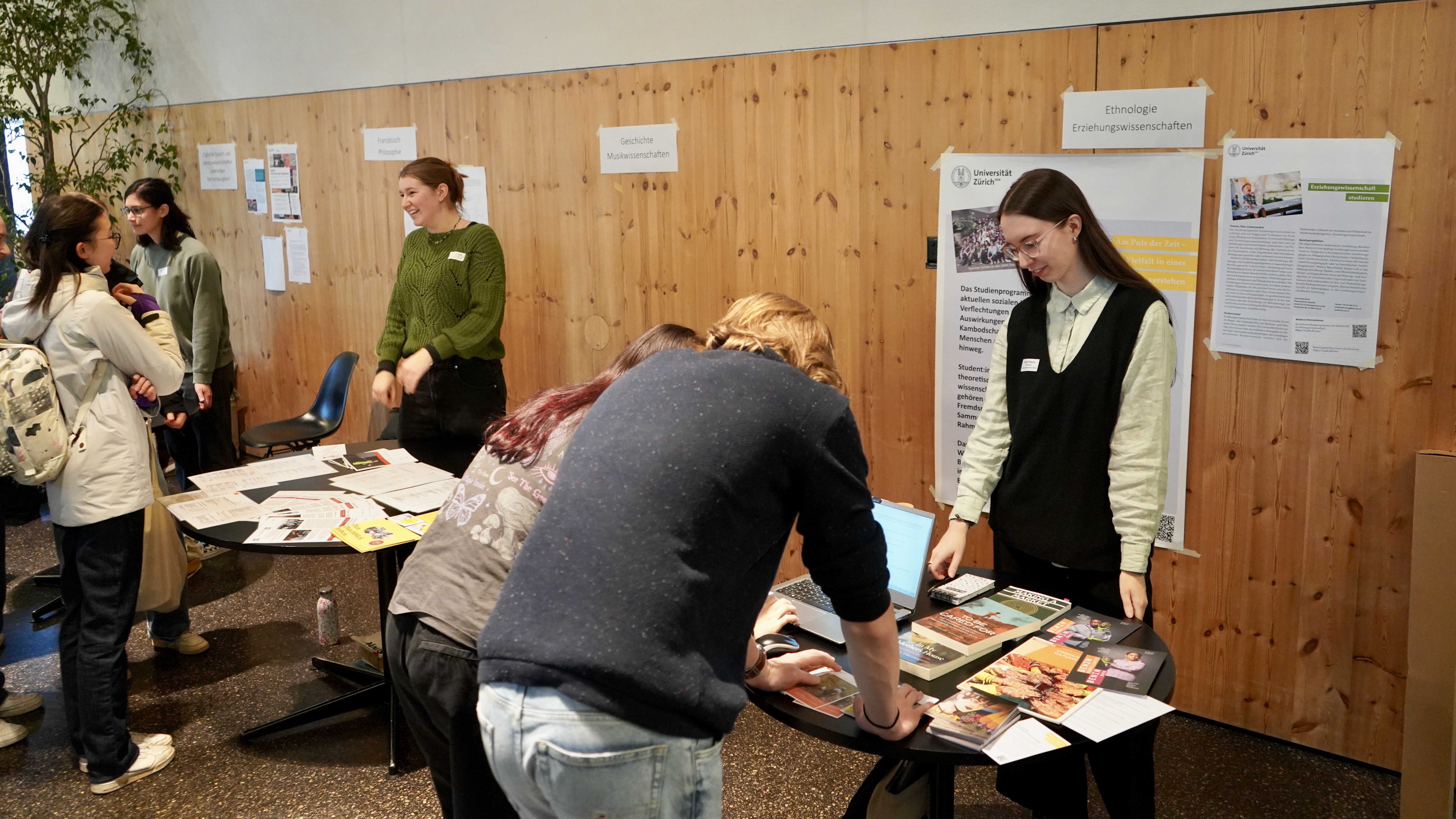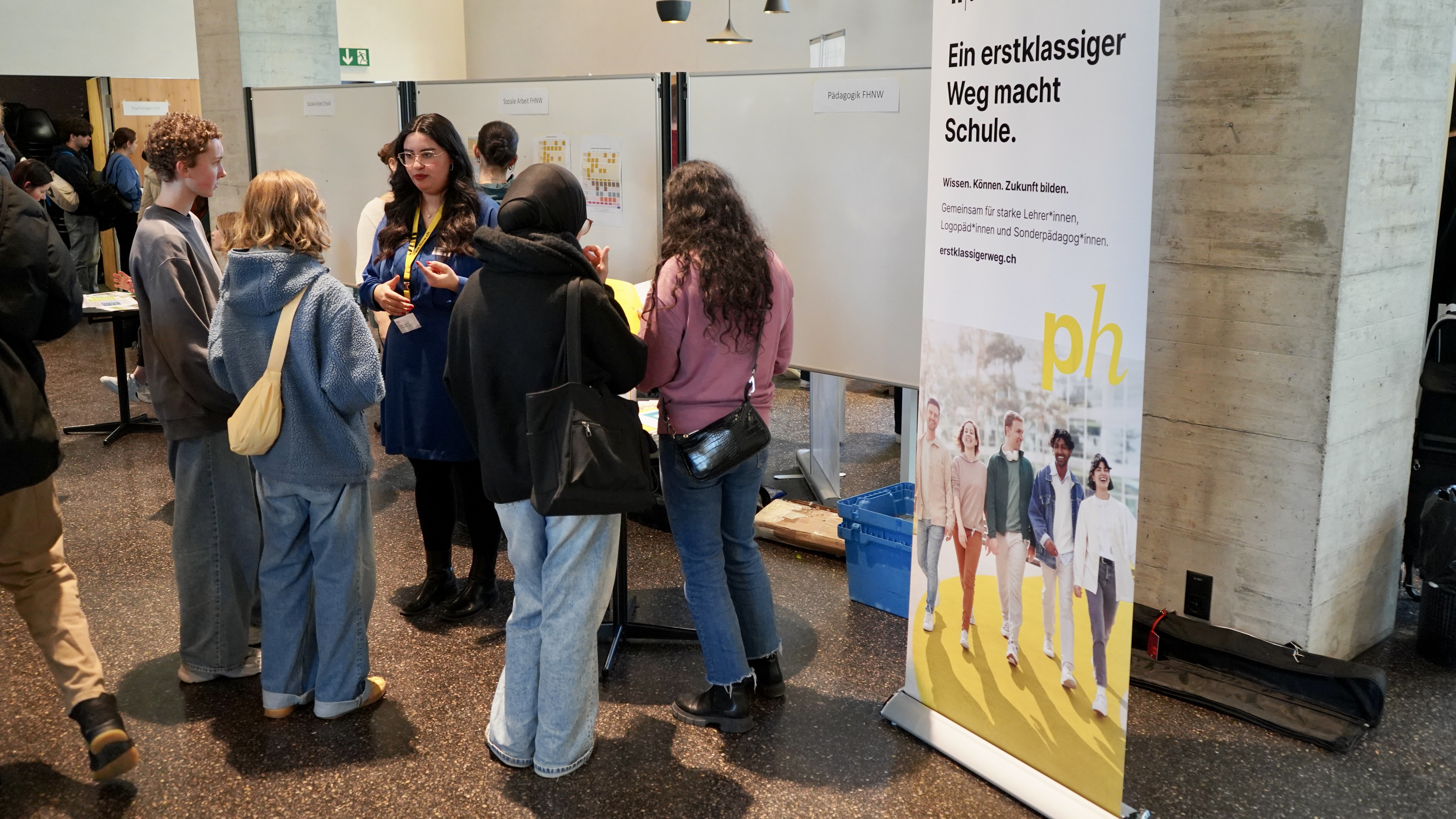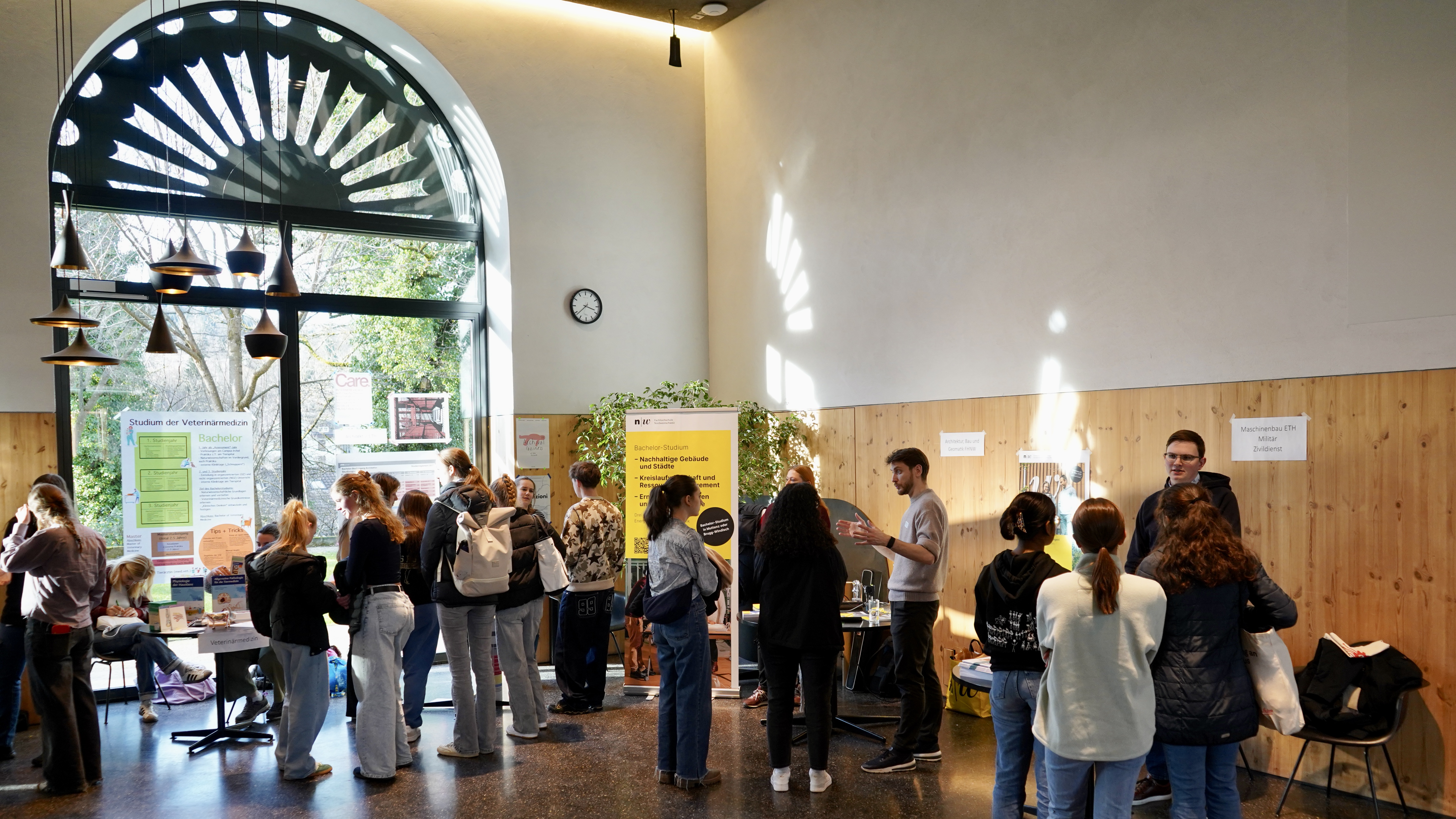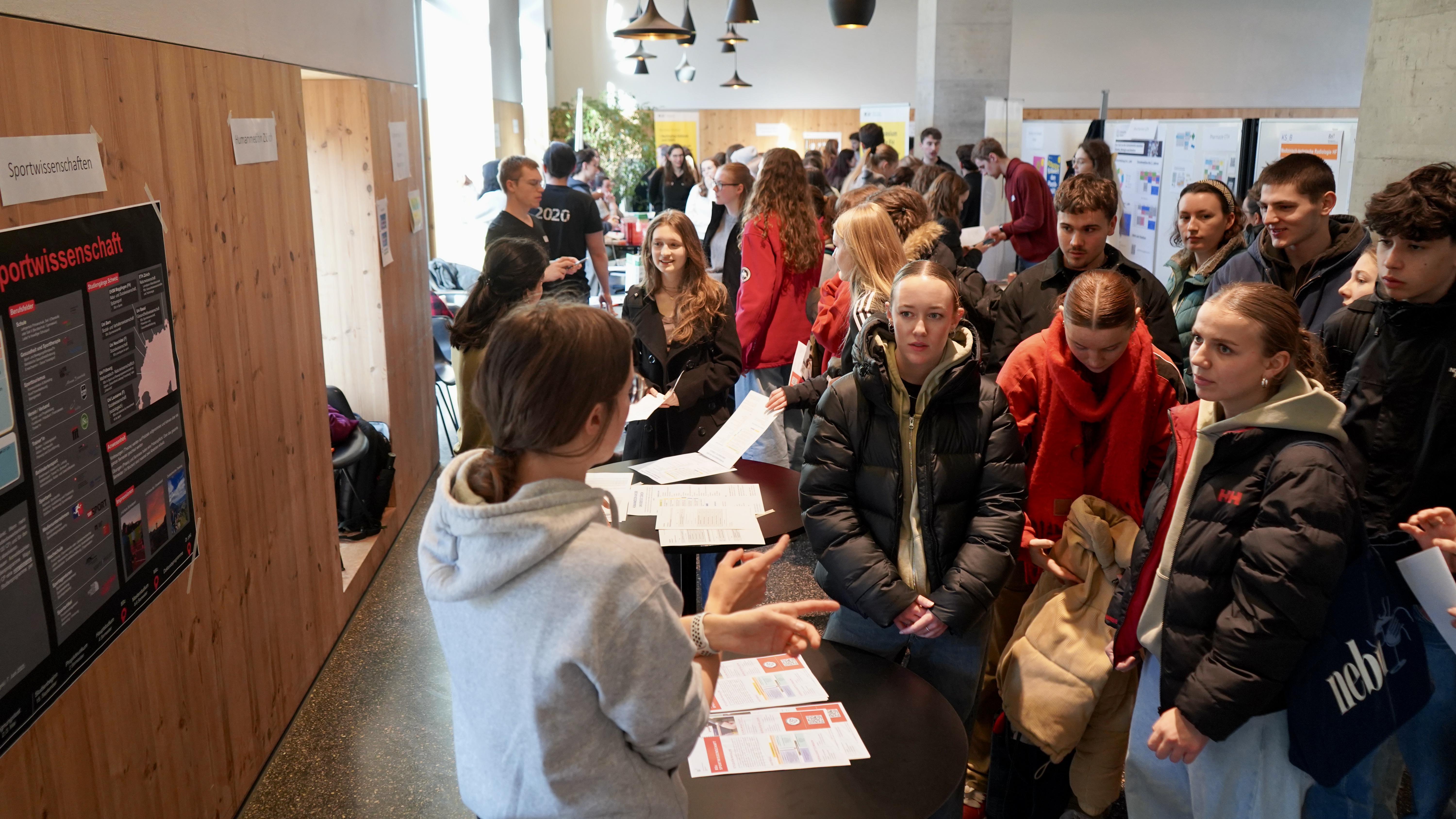 Um solche Fragen zu klären, organisierte die Kantonsschule und der Ehemaligenverein der Kanti Wettingen zusammen am 28. Januar 2025 eine zweistündige Studienmesse in der Cafeteria. An 49 Ständen gaben ehemalige Schülerinnen und Schüler Auskunft über ihr aktuelles Studium. Da sie keine Interessensbindungen hatten, konnten sie ehrlich über Vor- aber auch Nachteile ihres Studienganges berichten, den Aufbau des Studiums erläutern und teilweise auch erste Tipps für einen erfolgreichen Studieneinstieg geben. Der grosse Andrang zeigt: Der direkte und offene Kontakt zwischen ehemaligen und gegenwärtigen Kanti Wettingen-Schülerinnen und Schüler stellt eine willkommene Ergänzung zu den bestehenden Informationsangeboten dar. Frei nach dem Motto: Aus der KSWE. Für die KSWE.