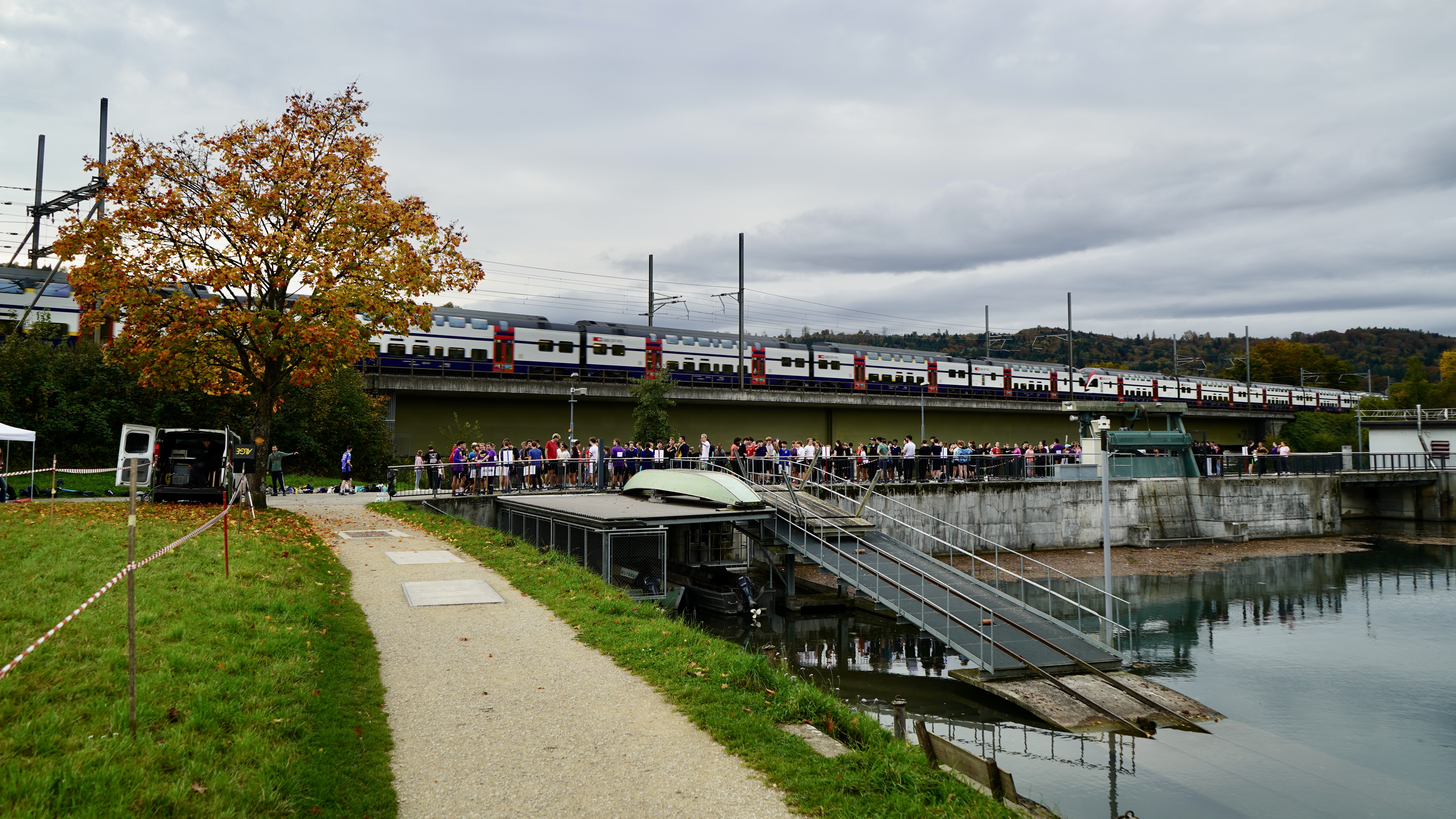 15:45 Uhr: Die letzten Vorbereitungen bis zum Start beginnen. Nach und nach versammeln sich die Schülerinnen und Schüler der 3. Klassen des Gymnasiums und der Fachmittelschule beim Stauwehr. Die Anwesenden sind mehr oder weniger bereit, um die 8,7 Kilometer lange Strecke entlang des Wettinger Stausees zu bewältigen.