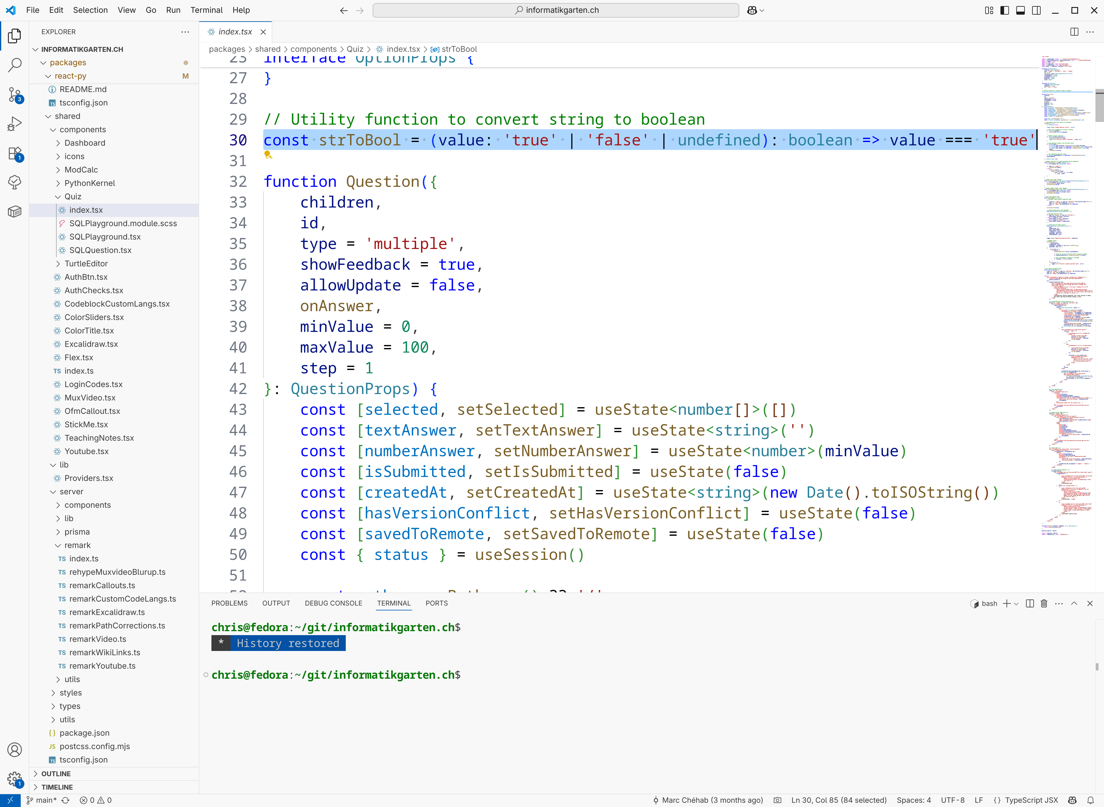 Meine zurzeit stärkste Sprache ist wohl Typescript, weil ich gern Webapps baue – wie z.B. mein interaktives Unterrichtsskript auf informatikgarten.ch. Webdevelopment verbindet Programmieren direkt mit kreativem Design und einem interaktiv nutzbaren Resultat, das mag ich sehr.