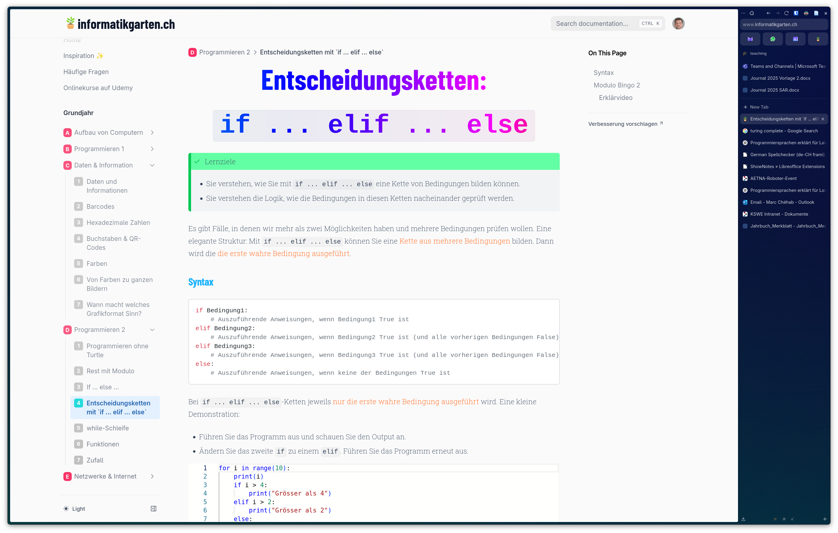 Bildschirmaufnahme des interaktiven Unterrichtsskripts auf informatikgarten.ch