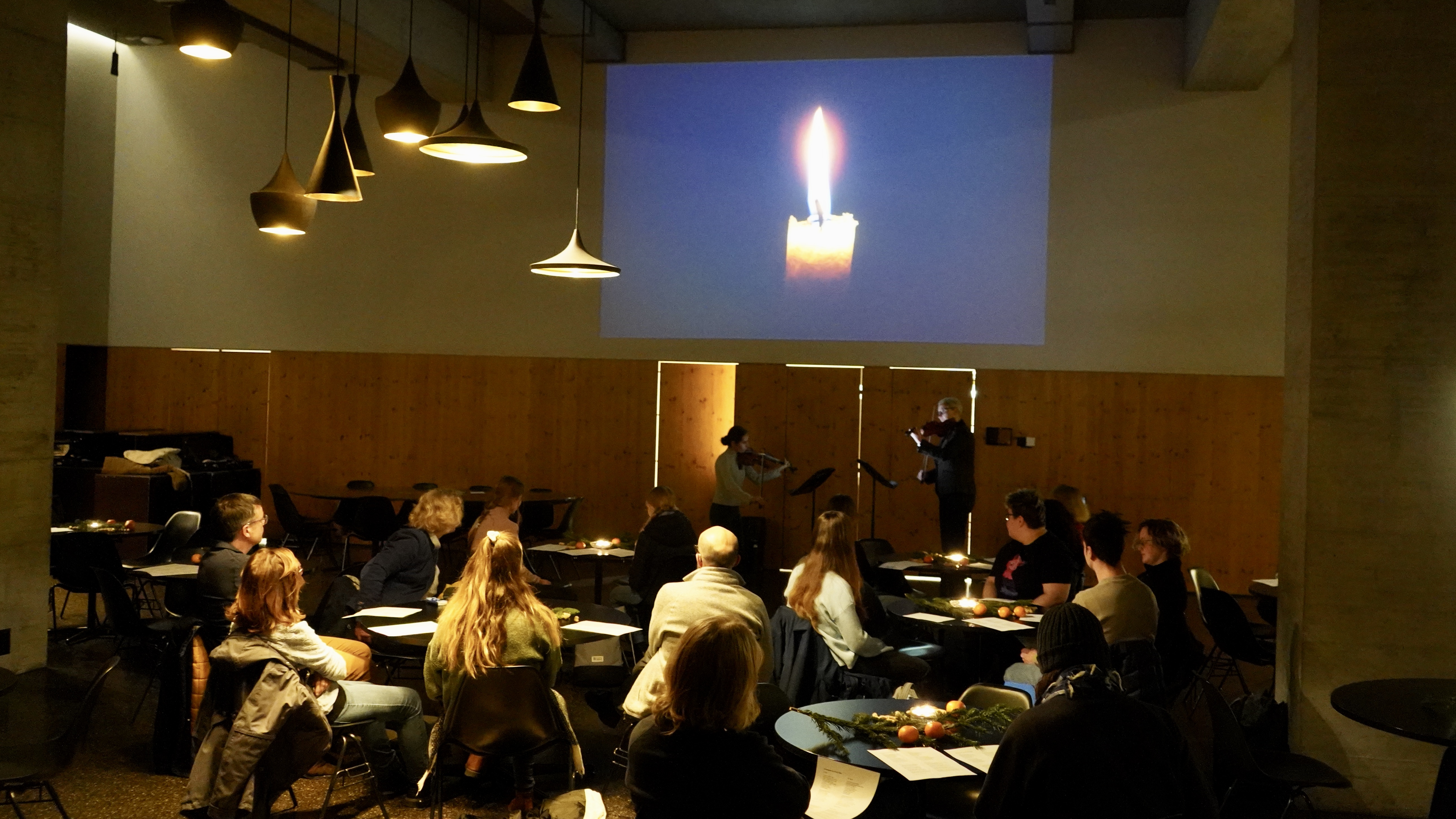 In Anlehnung an die Tradition des Rorate («Betet») habe ich zusammen mit Ada Abela vor mehr als 15 Jahren ein neues Gefäss des Innehaltens geschaffen: die morgendliche Atempause im Advent. Am 4. und 12. Dezember 2024 wurde die Cafeteria zu einem Ort der Stille und Besinnung, erhellt von Kerzenschein und geschmückt mit Tannenzweigen, Mandarinen und Nüssen. Zahlreiche Schüler, Lehrer und Mitarbeitende gönnten sich dort einen Augenblick der Ruhe.