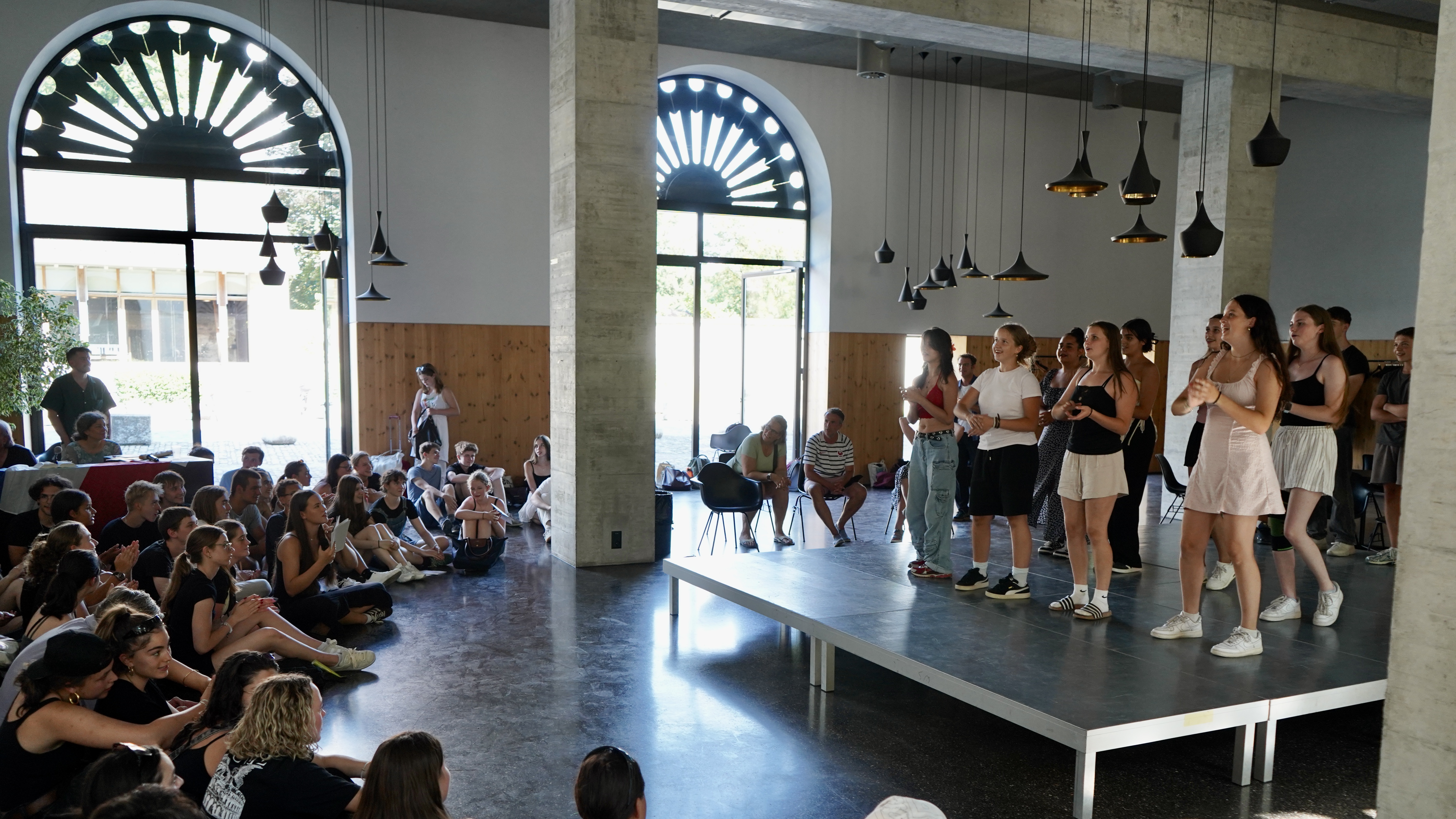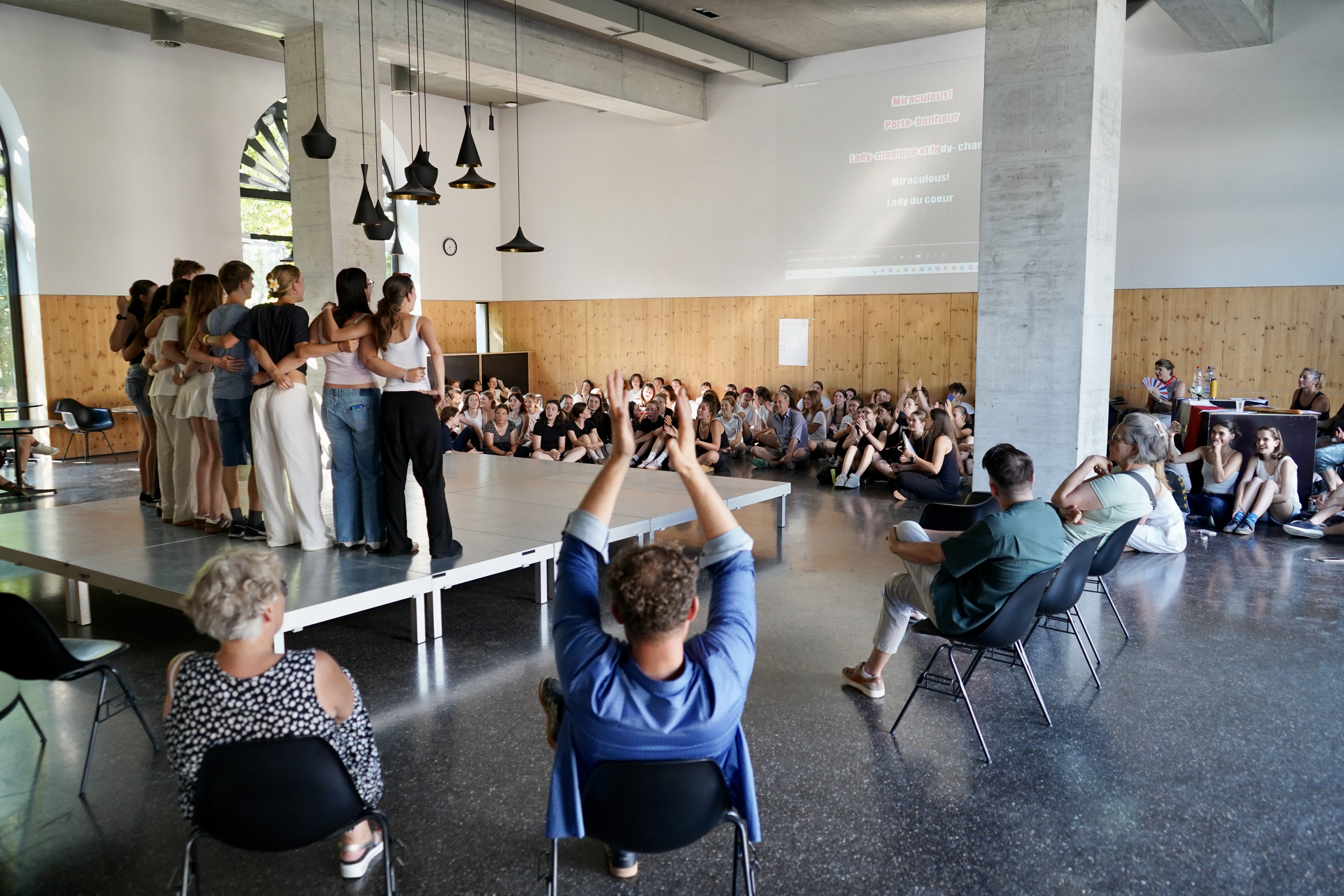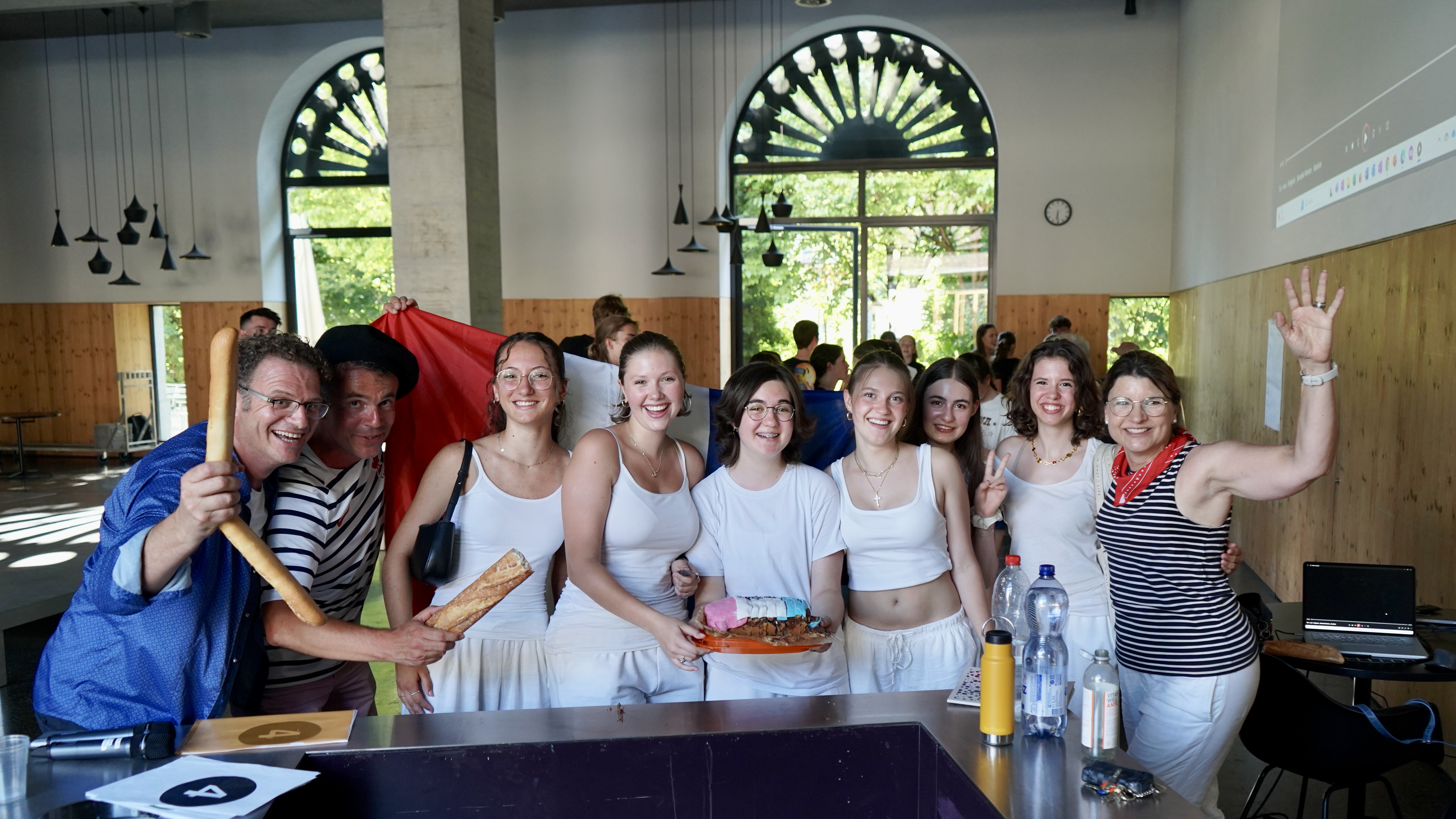 Après l’habituelle chanson introductive des professeurs (plus que jamais hors compétition), sept classes de français se sont mesurées à la cafeteria un soir de fin de semestre en présentant des performances musicales (et chorégraphiques !) plus ou moins élaborées, sous le regard critique mais toujours bienveillant du jury tripartite.