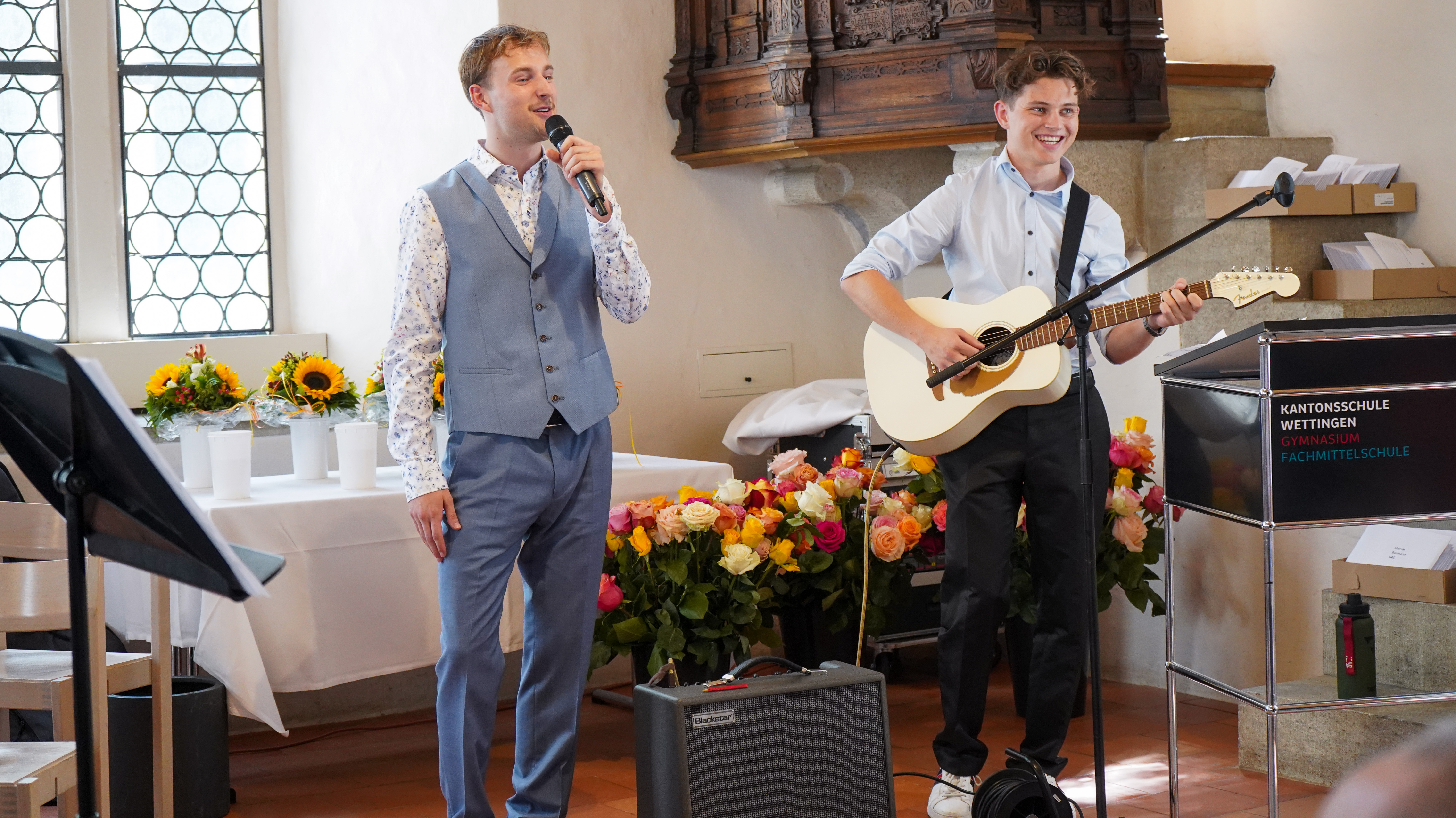 In der festlich geschmückten Aula der Kantonsschule Wettingen, begleitet vom KSWE-Celloquartett und dem Orchester unter der Leitung von Cécile Grüebler und Renate Steinmann, fanden am 26. Juni die Abschlussfeiern der Fachmittelschule und der Fachmaturität und am 27. Juni die Maturfeiern des Gymnasiums der Kantonsschule Wettingen statt.