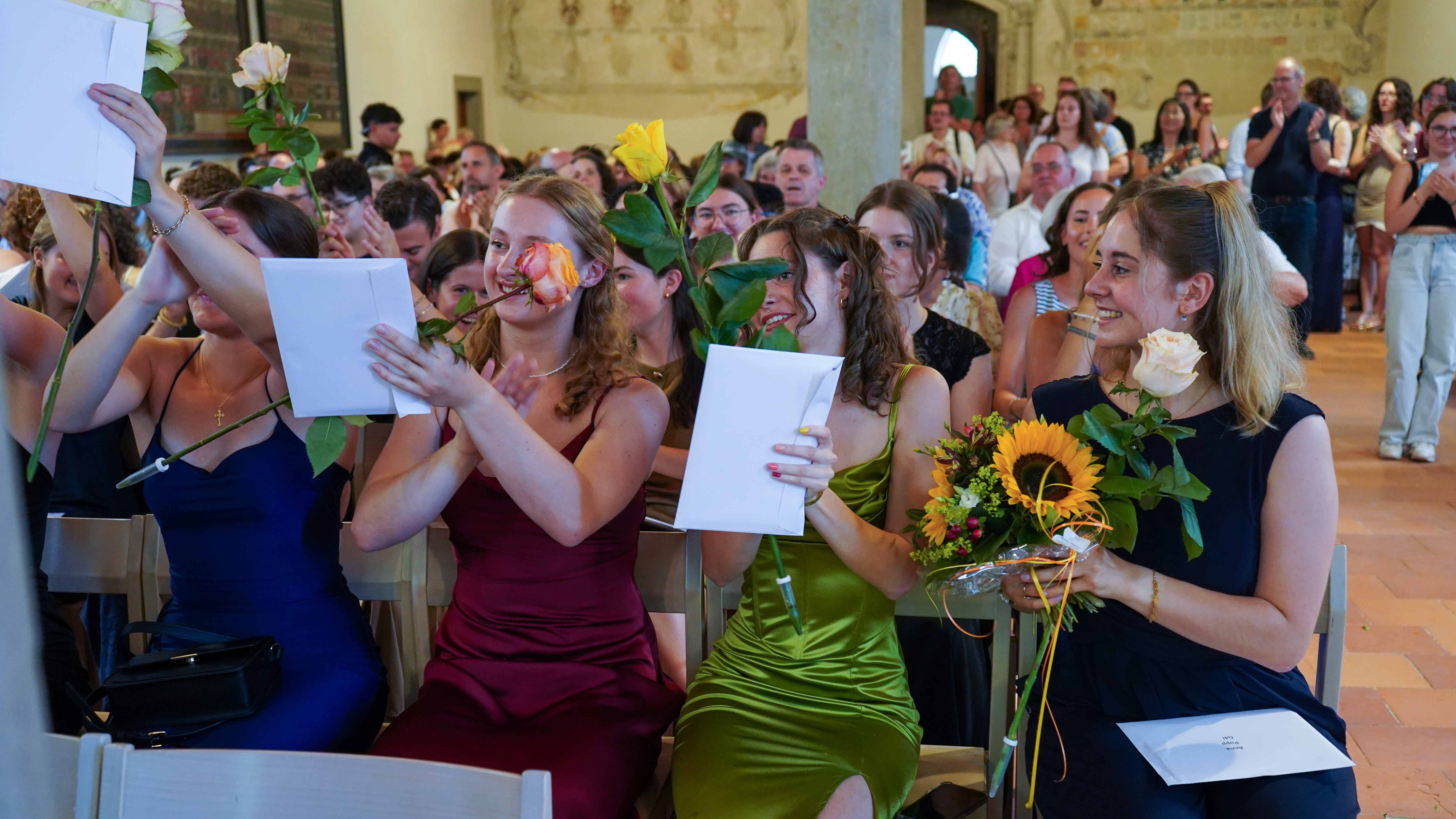 Auch die Abschiedsworte der Abteilungslehrpersonen zeugten davon, dass die KSWE mehr ist als Schule: Bei einigen Schülerinnen und Schülern, Abteilungslehrperson und Eltern kamen Taschentücher zum Einsatz – sei es zum Abtrocknen einer Träne, wegen der Hitze oder zum Winken. Spürbar war: Das ist ein besonderer Moment, welcher das Ende und zugleich den Anfang von etwas Neuem markiert.